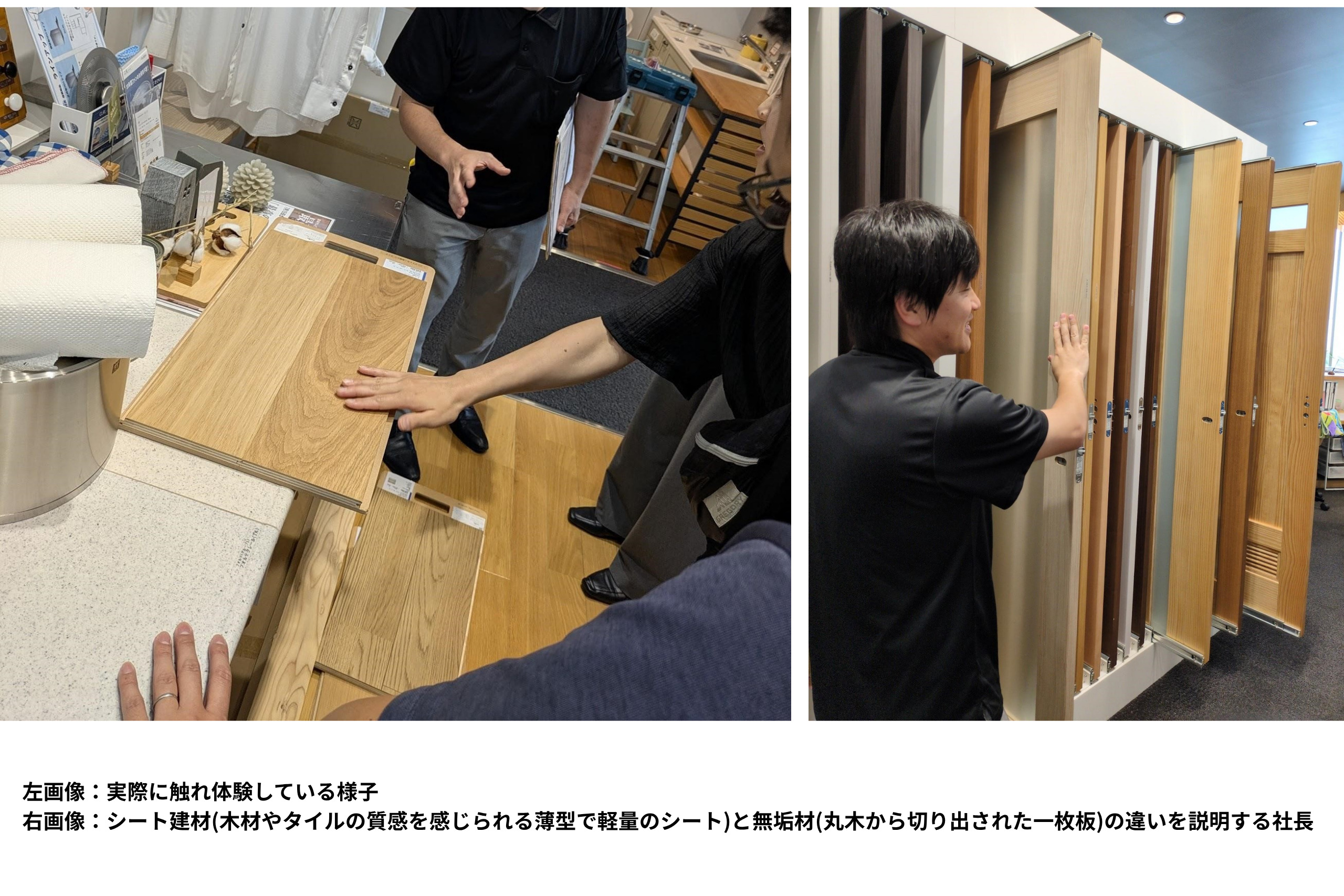 WOOD ONEさんでは、カップボード、床材、建具などを見学させていただきました。
