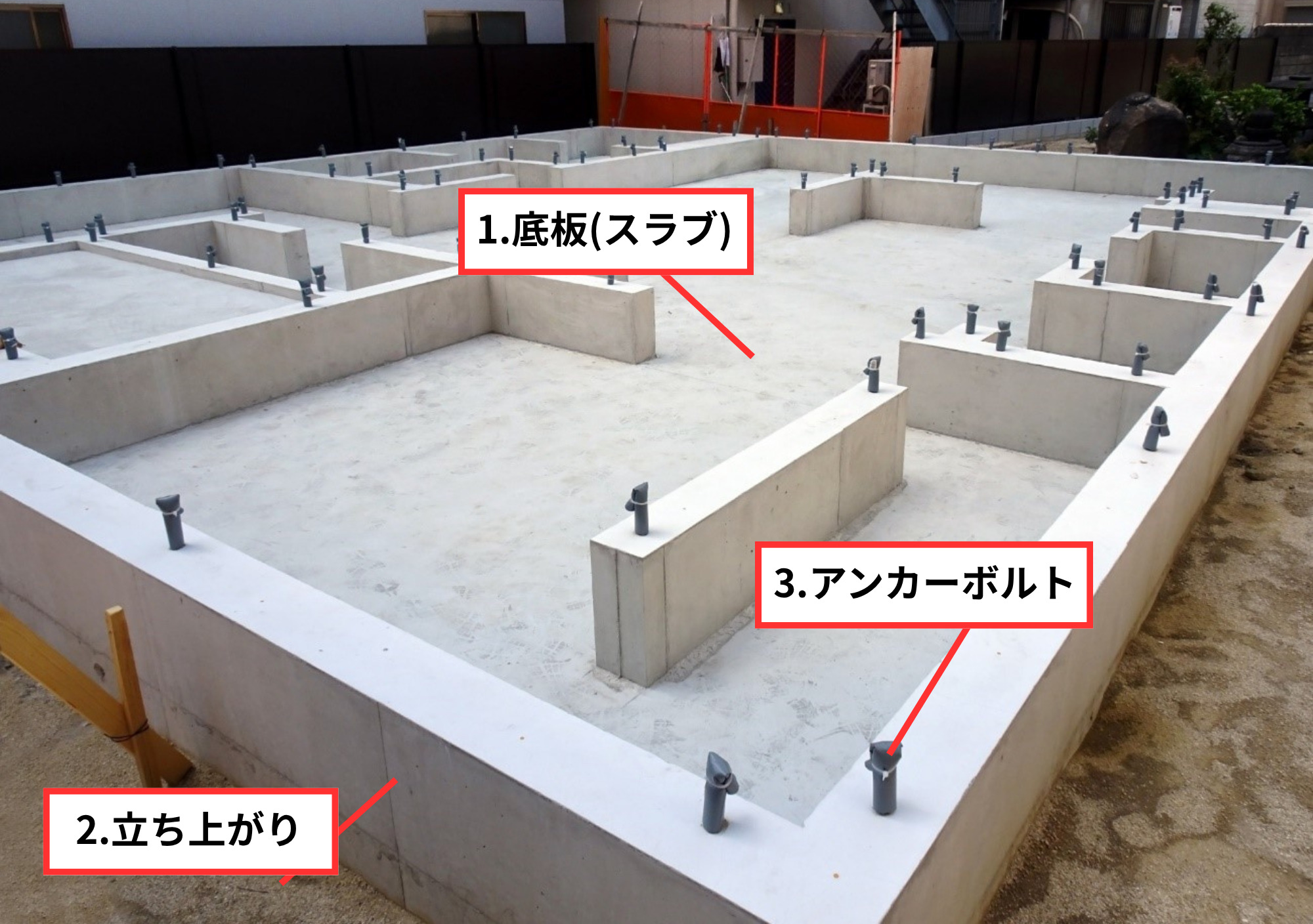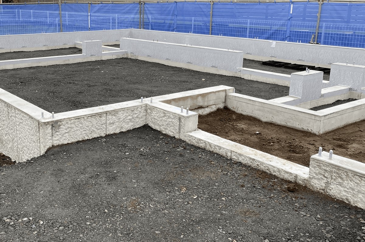 基礎は、建物と地面の間に設けられる構造部分で、家全体を支える“台”にあたる部分になります。