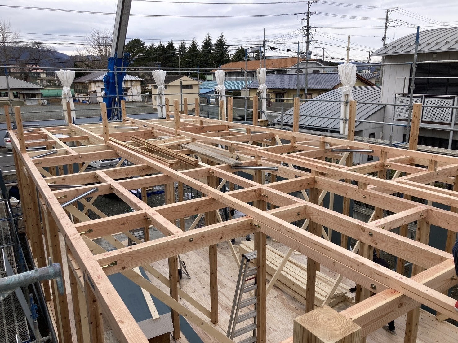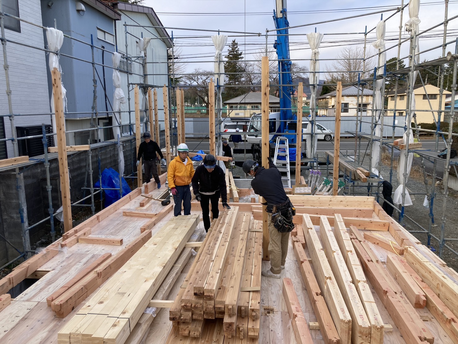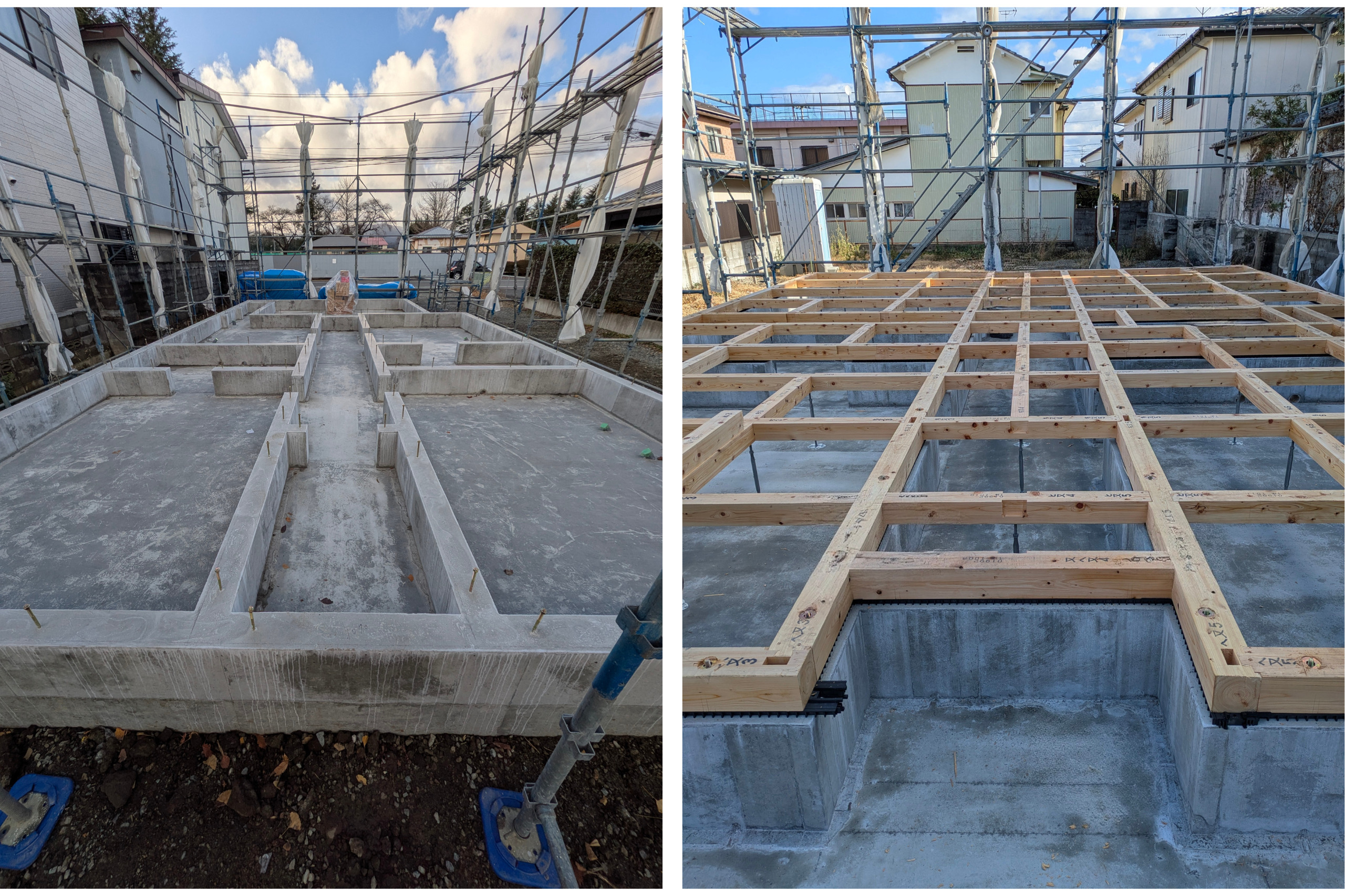 工事が始まると、景色は目まぐるしく変わります!基礎ができ、柱が立ち、上棟を迎えて建物はどんどん立体的に。