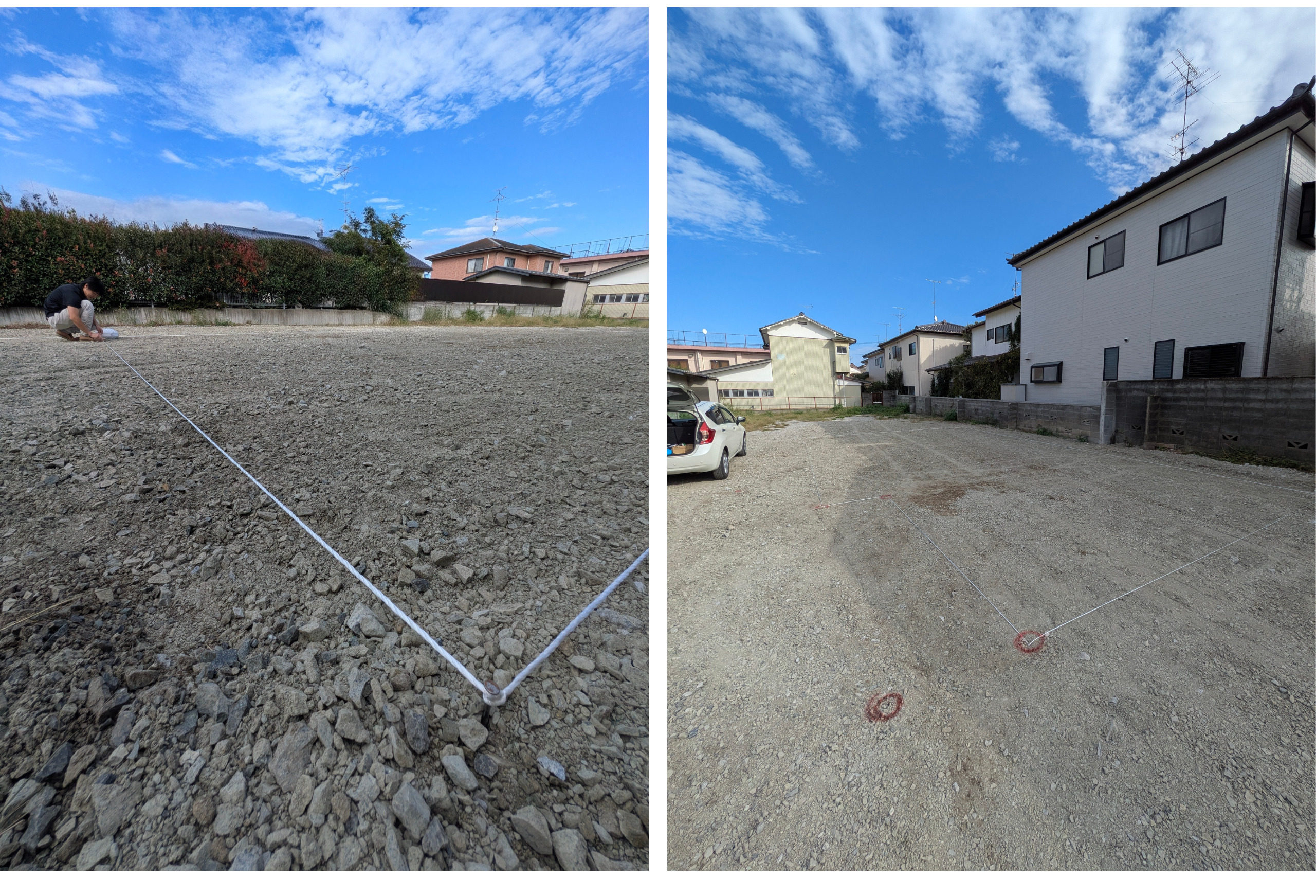 敷地調査は店舗づくりを始める第一歩。当時はまだこの作業に慣れておらず、頭に「?」を浮かべながらなんとか作業を行いました💦