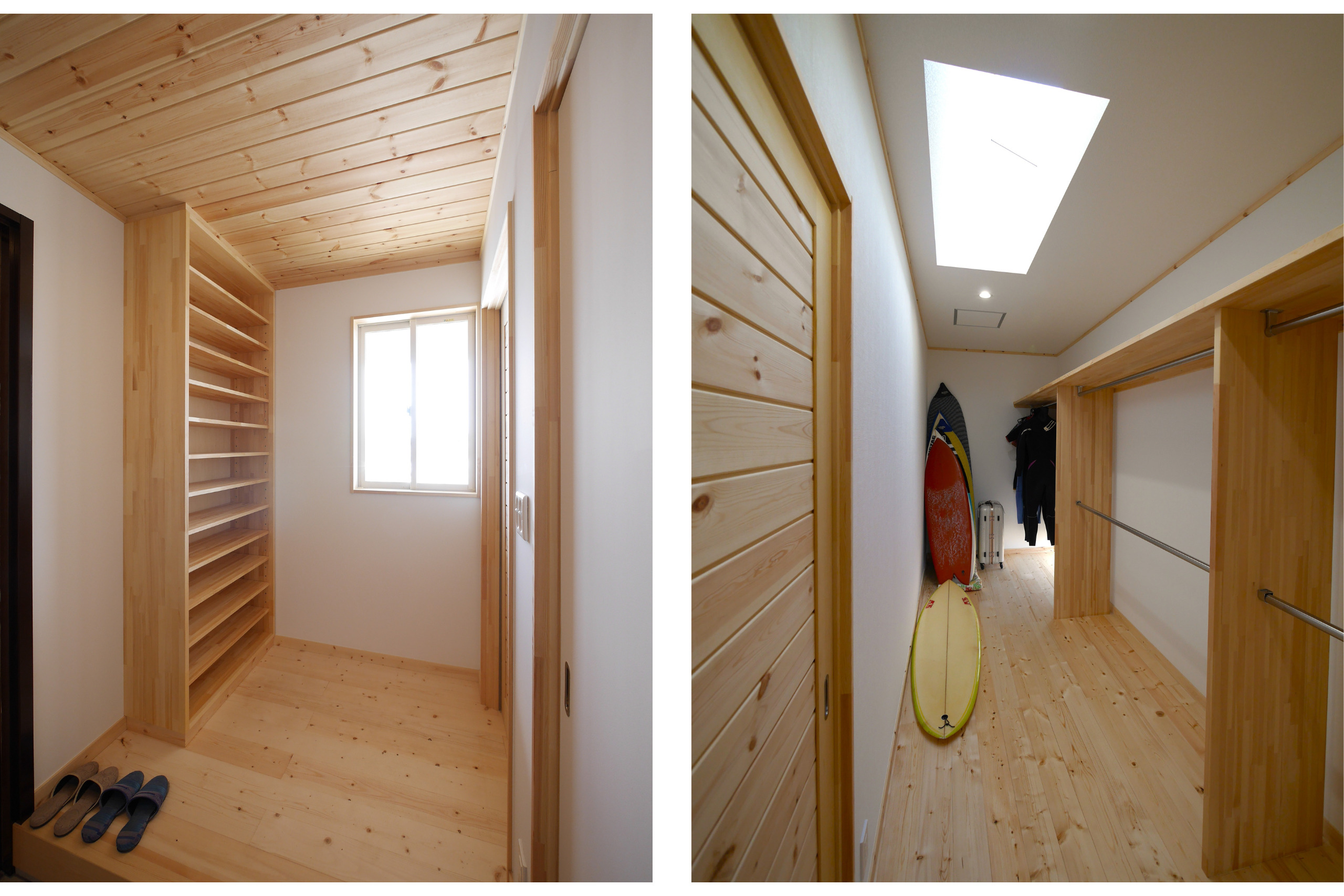 地元のサーファーS様とダンスがご趣味の奥様、そのご家族の皆さまのお家。サーファーズテイストを取り入れ暖かみのあるデザインを目指し、無垢の木をふんだんに使ったお家となりました。