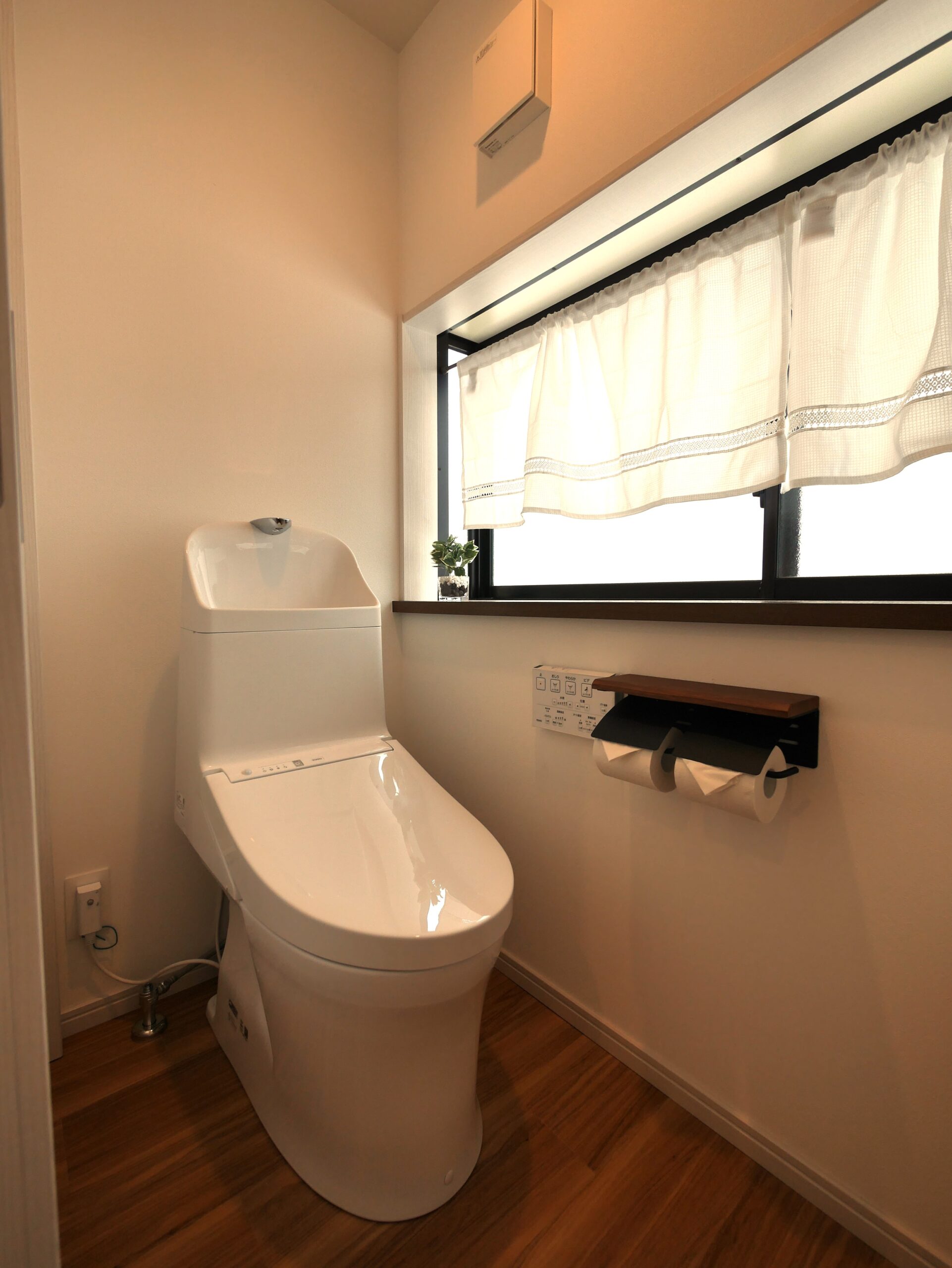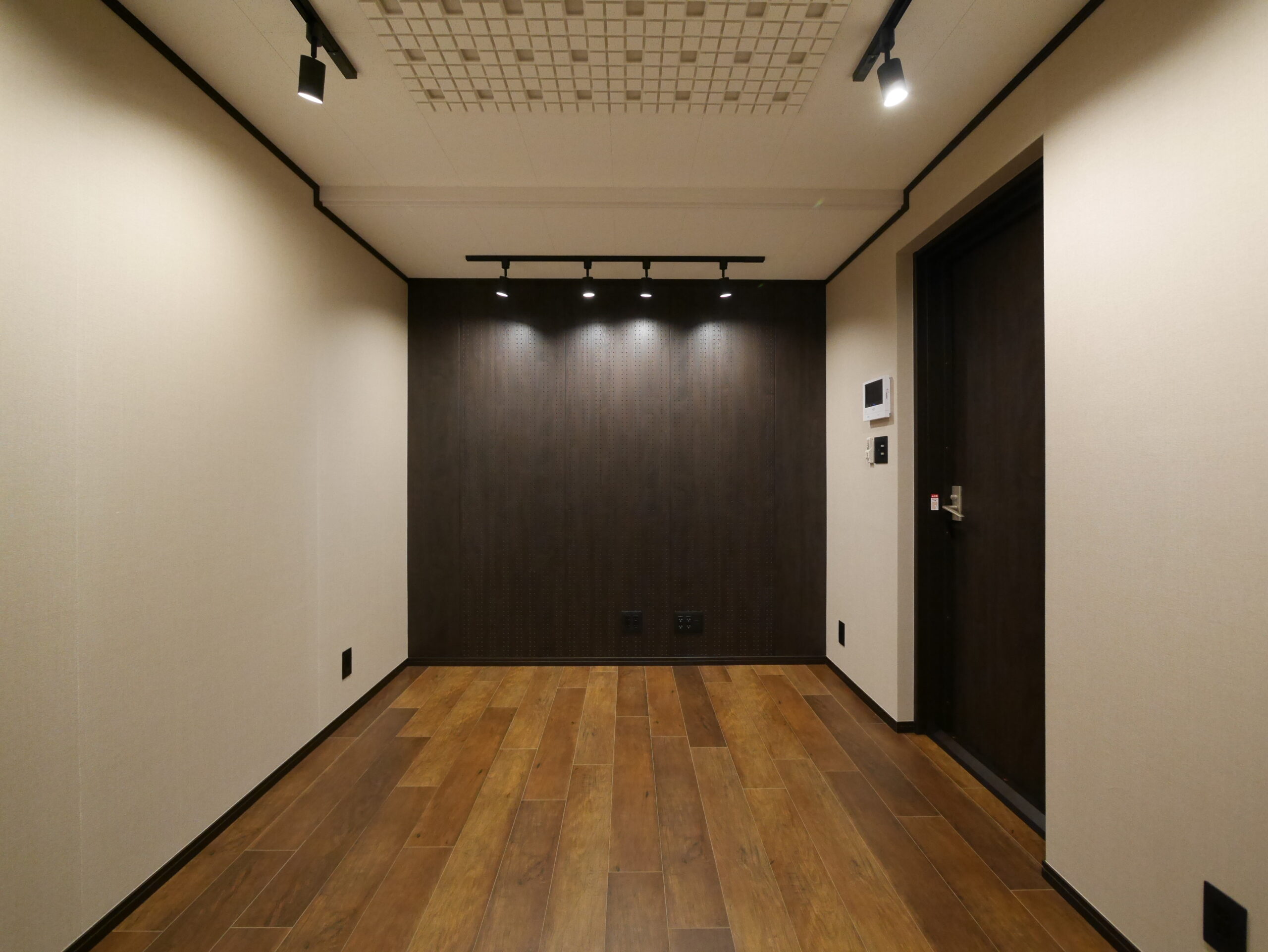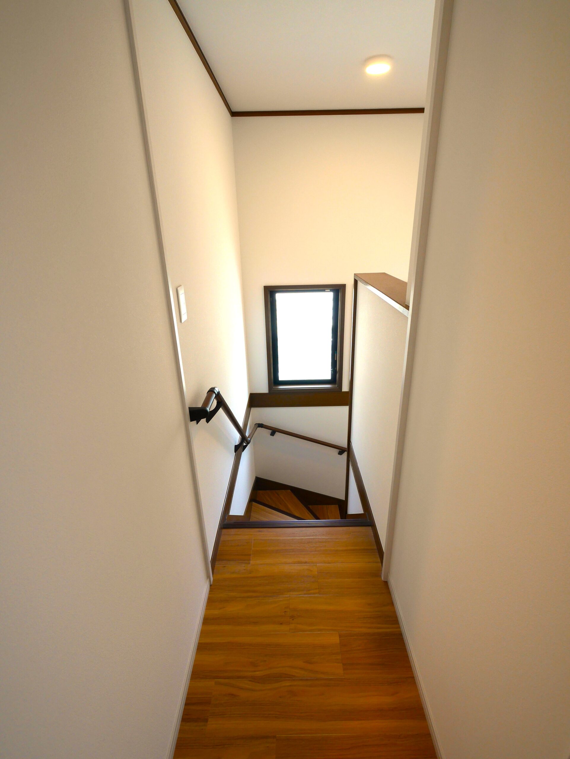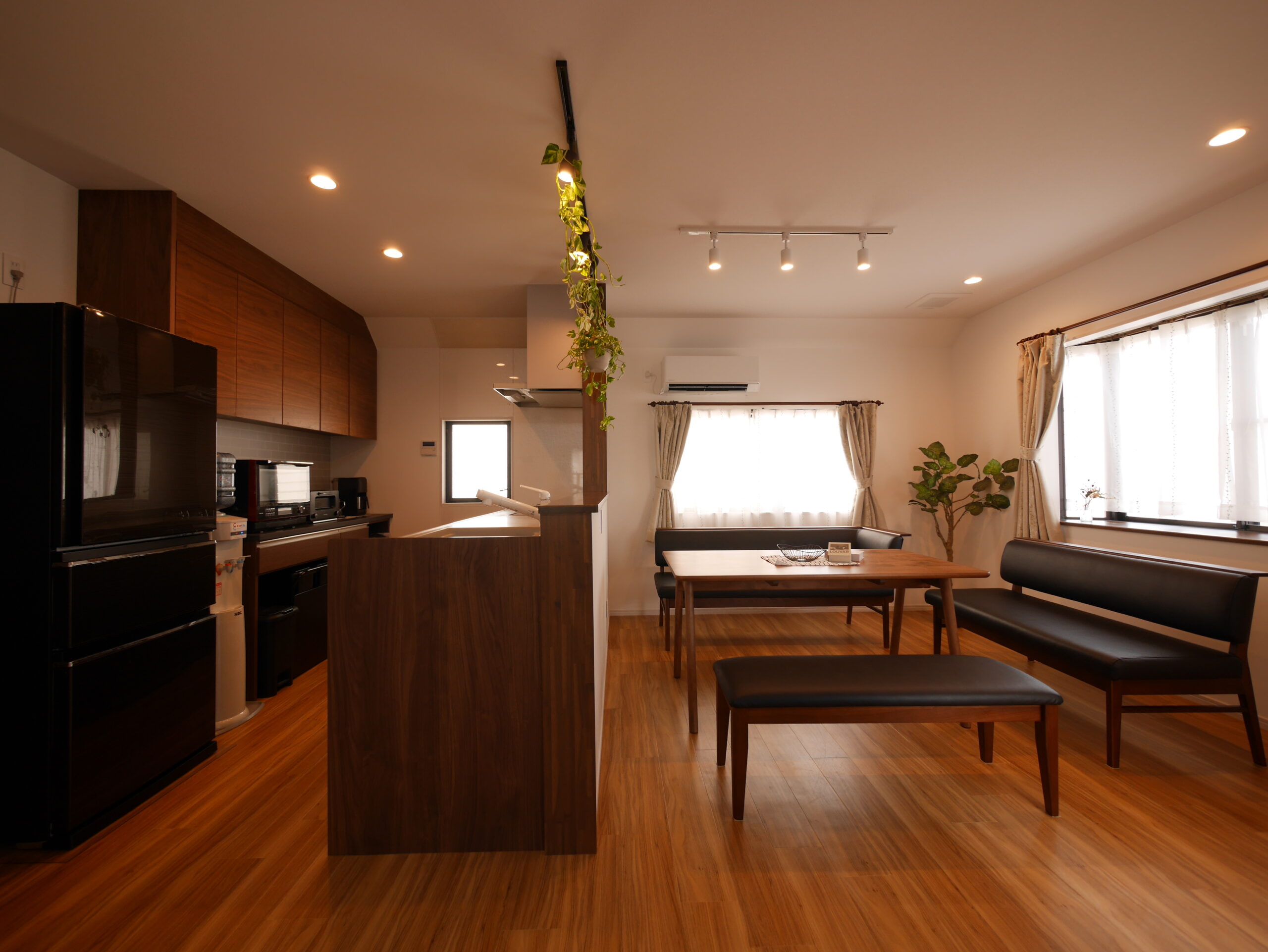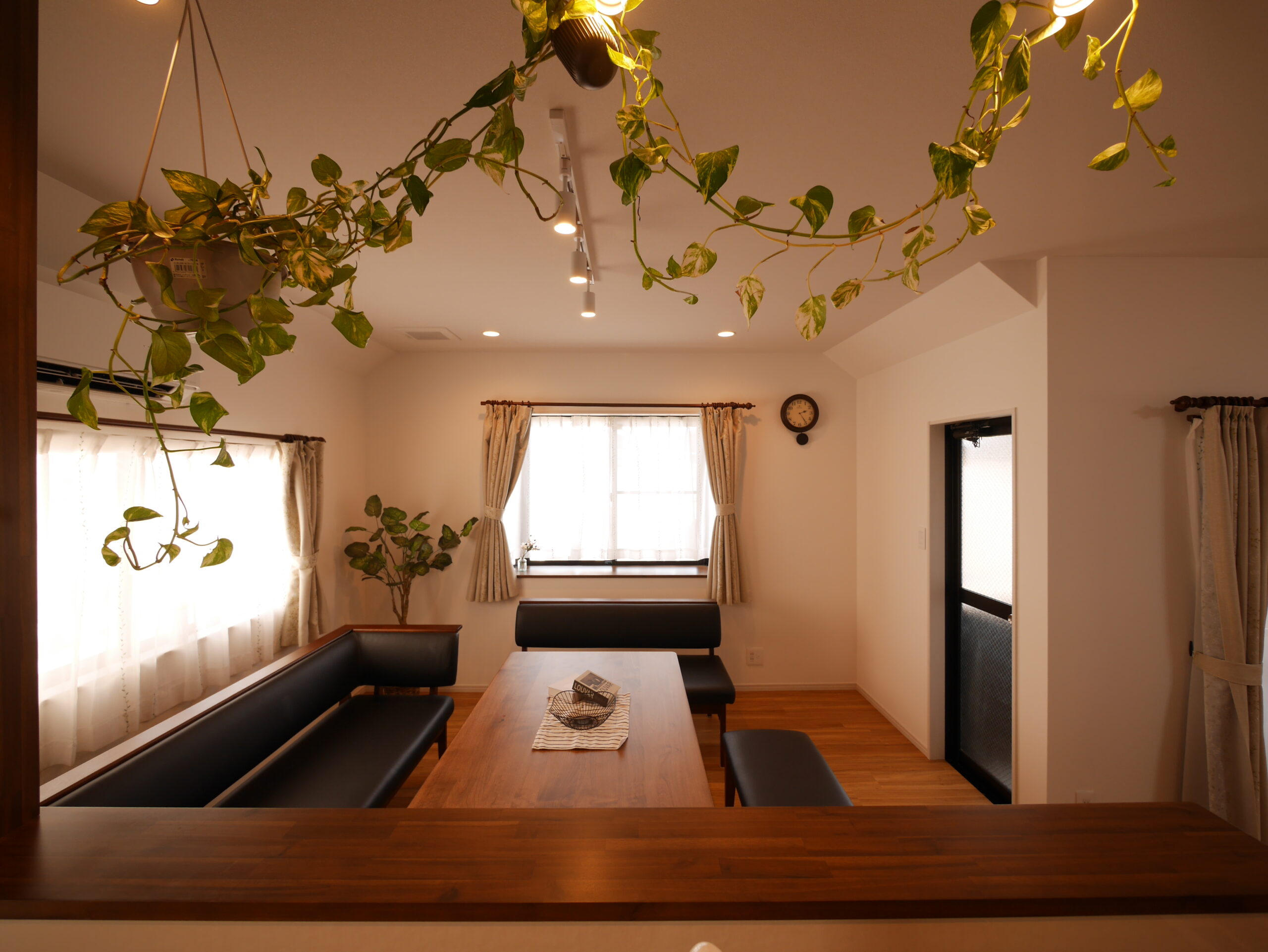 LDKは2階に設け、日当たりとプライバシーを両立。1階には旦那様の仕事場として防音室を設けました。居住空間である2階の断熱材は全て入れ替え断熱性を向上させ、木の雰囲気をふんだんにを取り入れたモダンなインテリアに仕上げました。
