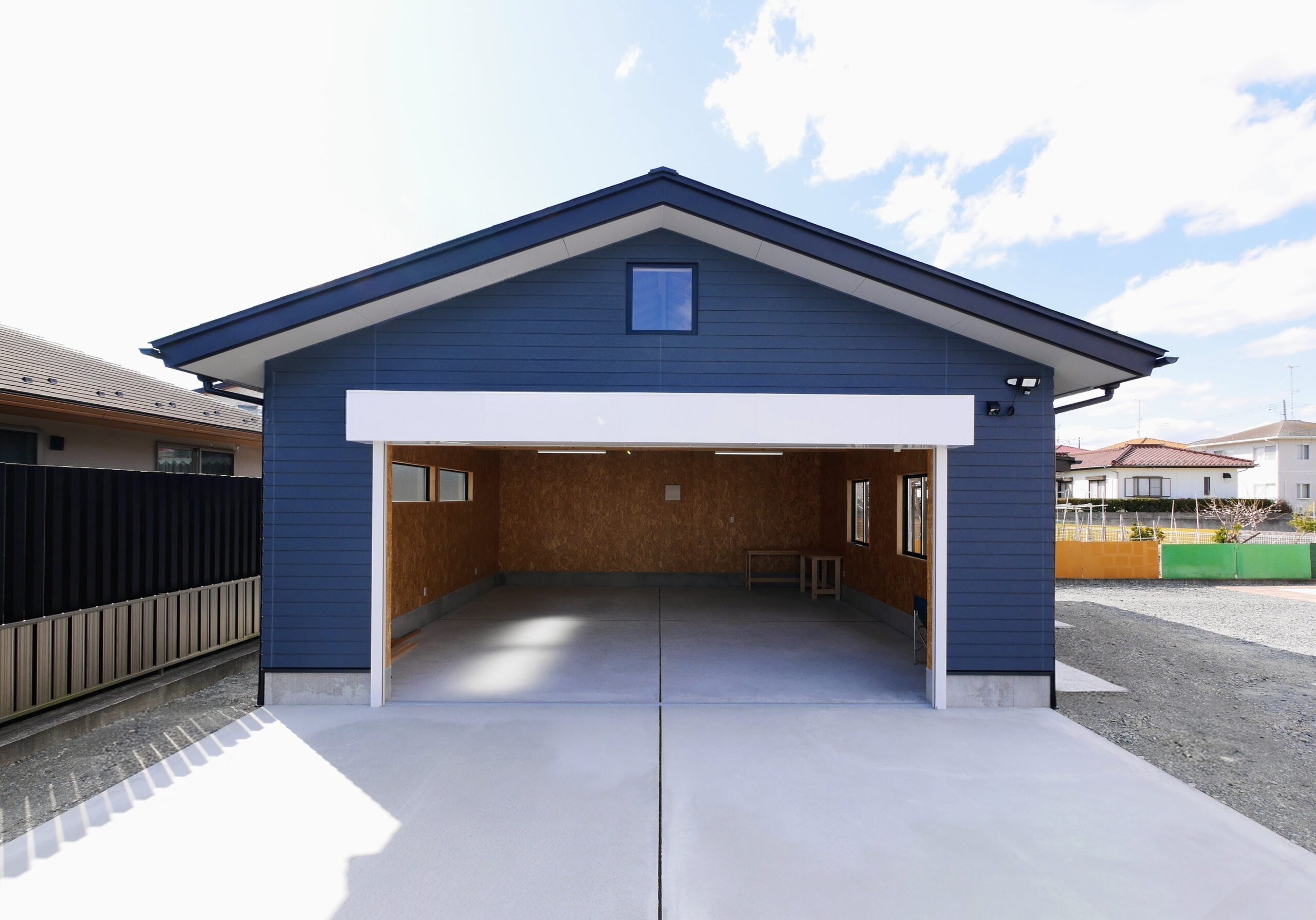 そんなご家族のために、雨の日でも気にせず作業や遊びが楽しめる倉庫が完成しました。